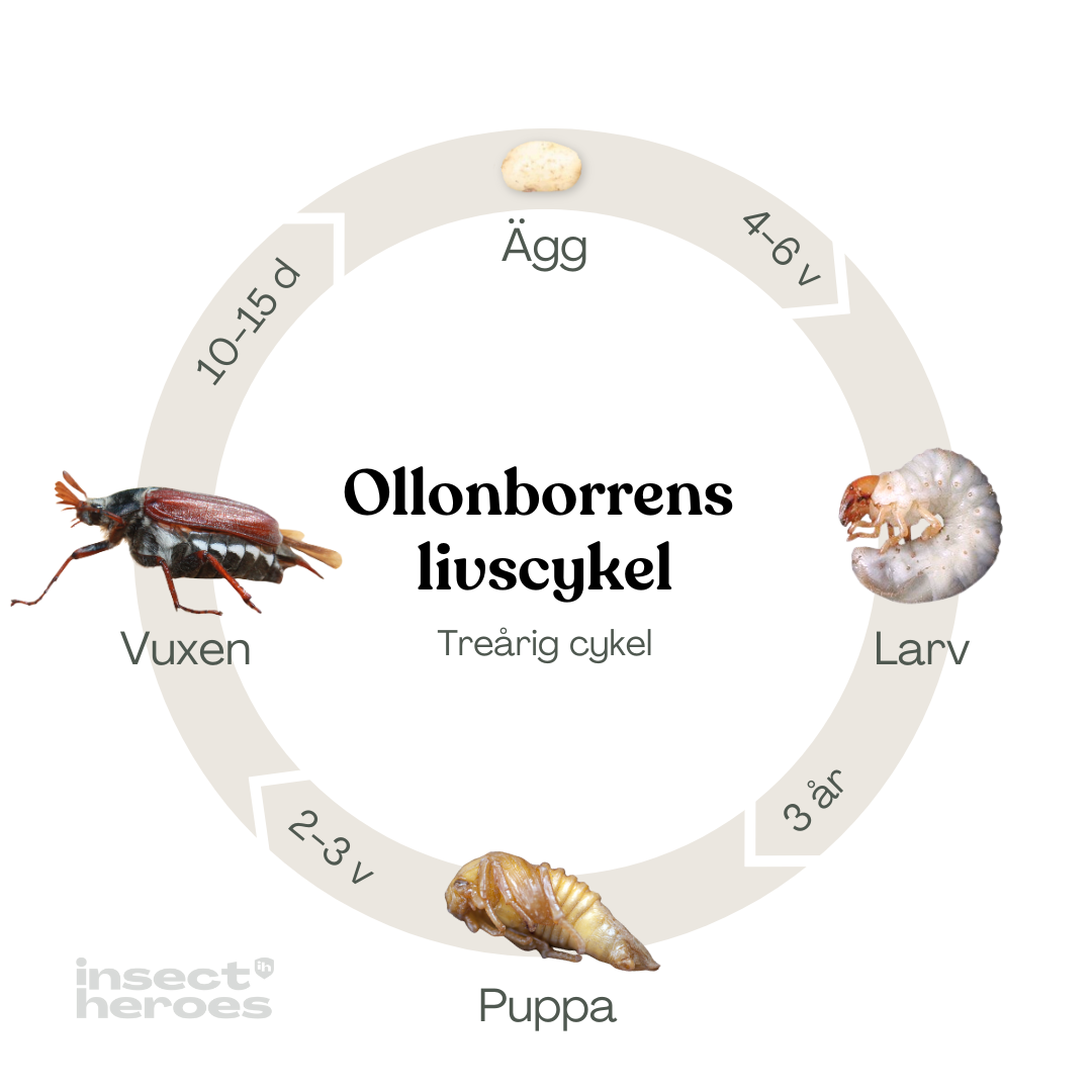 Eftersom ollonborrar och pingborrar lever flera år som larver bör de bekämpas varje år. På så sätt tar du död på de unga larverna innan de hinner växa sig stora.
