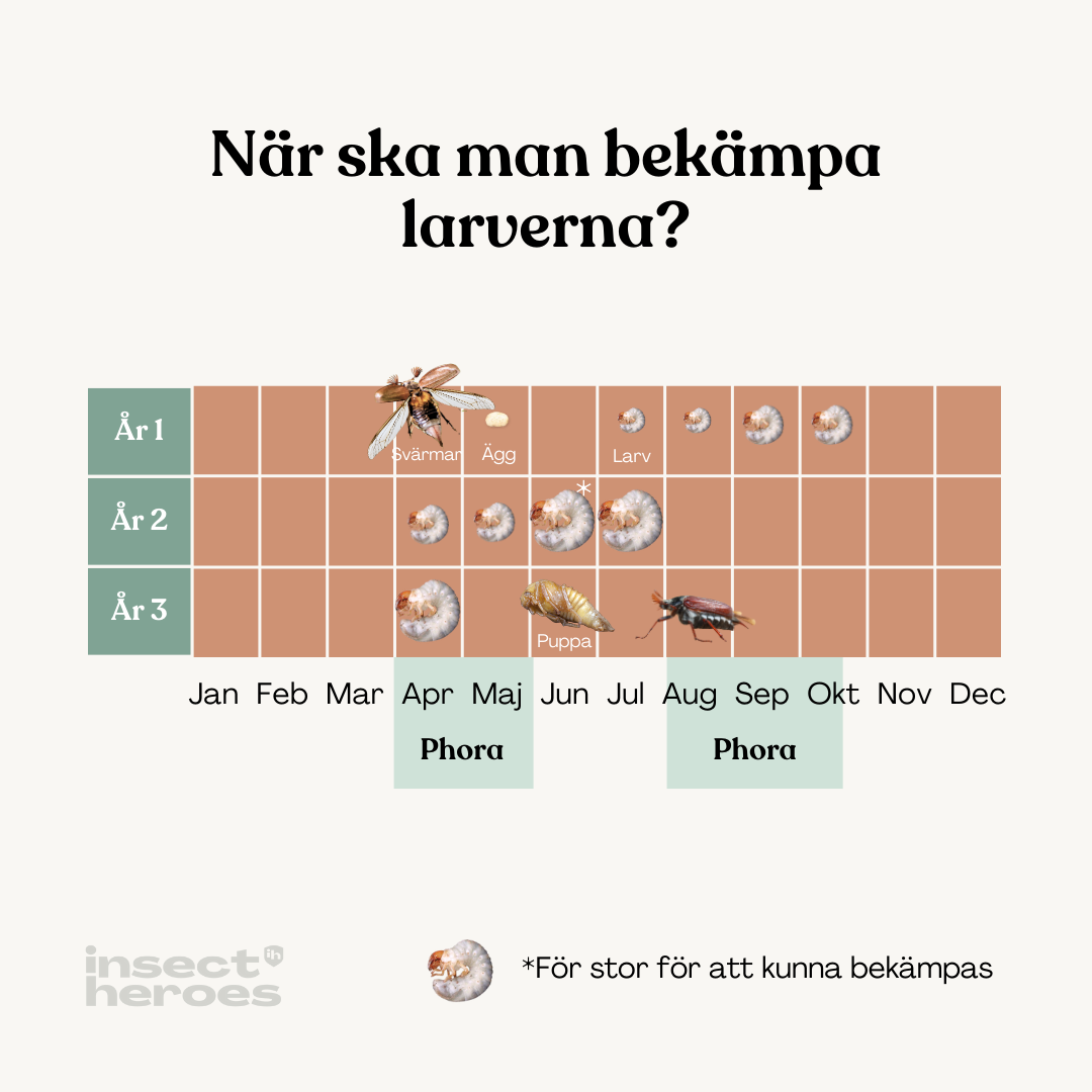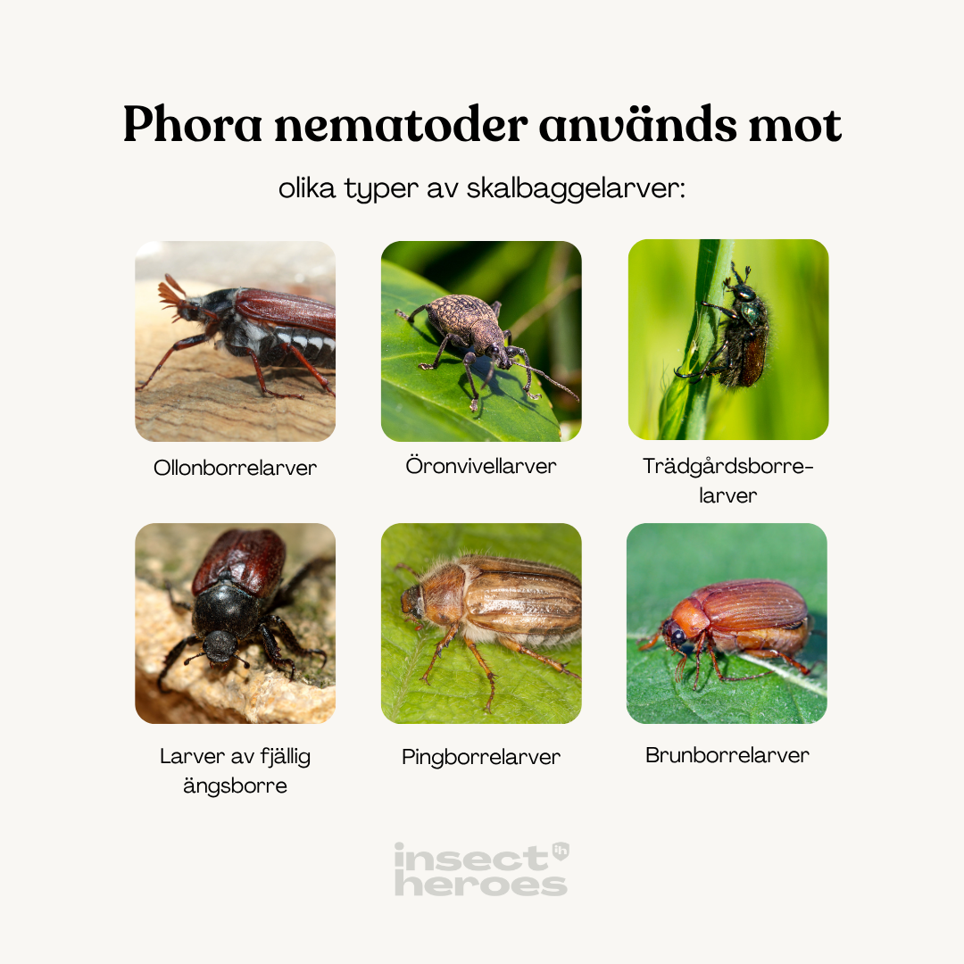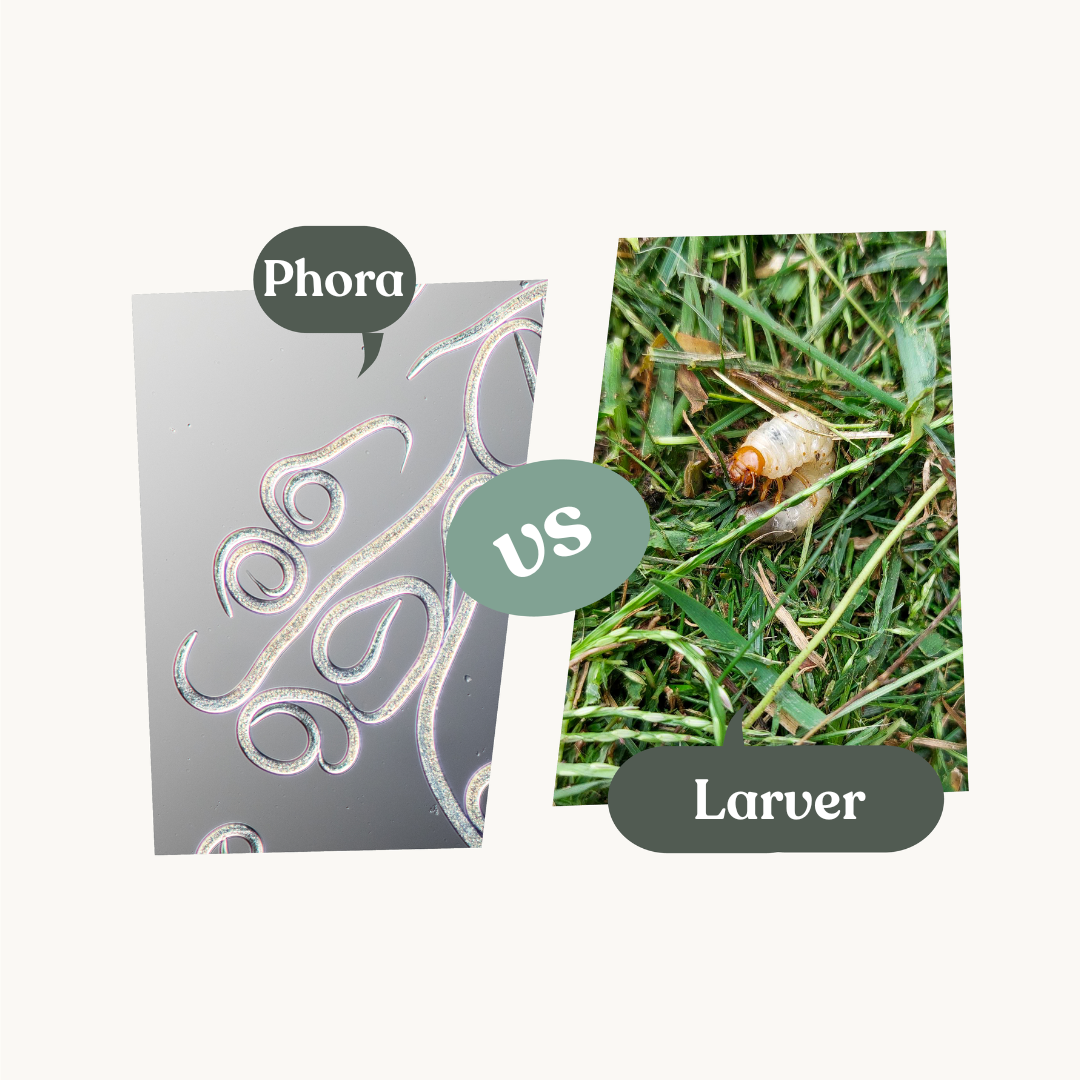 För att förhindra att larver i gräsmattan blir ett problem kan du använda Phora nematoder i augusti eller september – även om du inte har sett några skalbaggar.