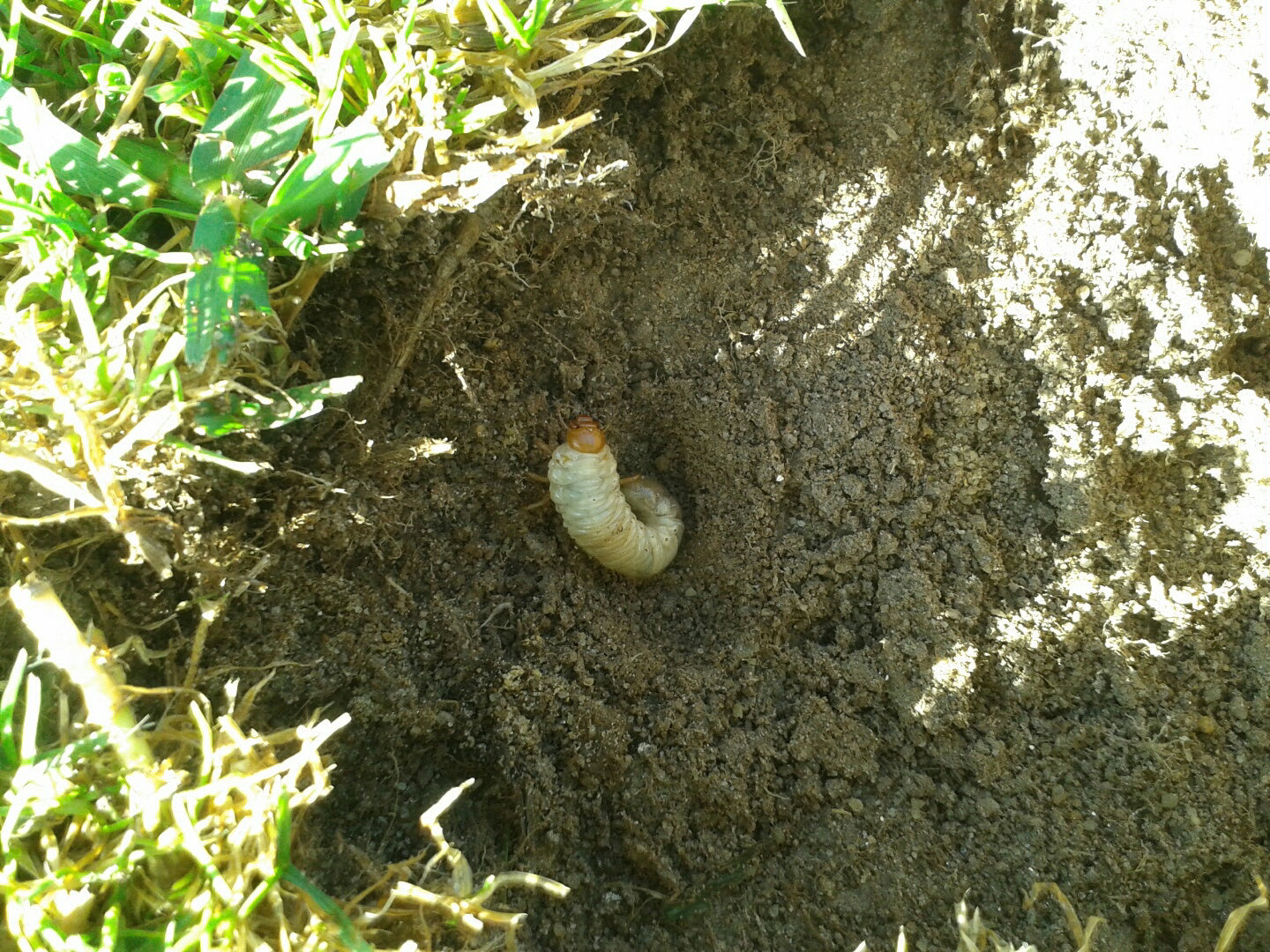 När du gräver upp dem och håller dem i handen kröker de sig i en typisk “C”-form. De kan bli upp till fyra centimeter långa och är helt beige till färgen, förutom huvudet som är kastanjebrunt. Strax under huvudet syns tydligt sex ben — detta kännetecken skiljer dem från harkrankslarver, som saknar ben.
